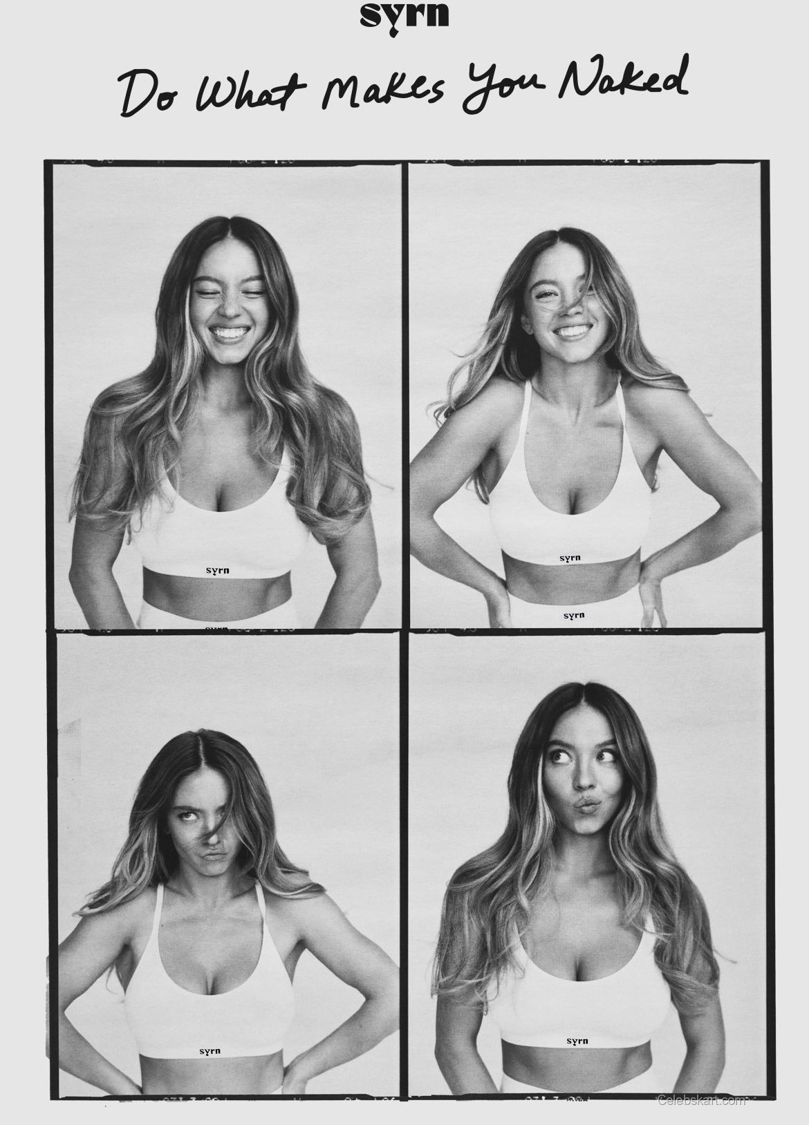 The SYRN visuals lean into a modern, slightly edgy aesthetic, pairing Sydney with clean studio lighting and contemporary styling. Her expressions remain soft yet confident, helping the campaign maintain a strong commercial appeal while still feeling fashion-forward. The wardrobe choices emphasize structured silhouettes that complement her on-camera presence.