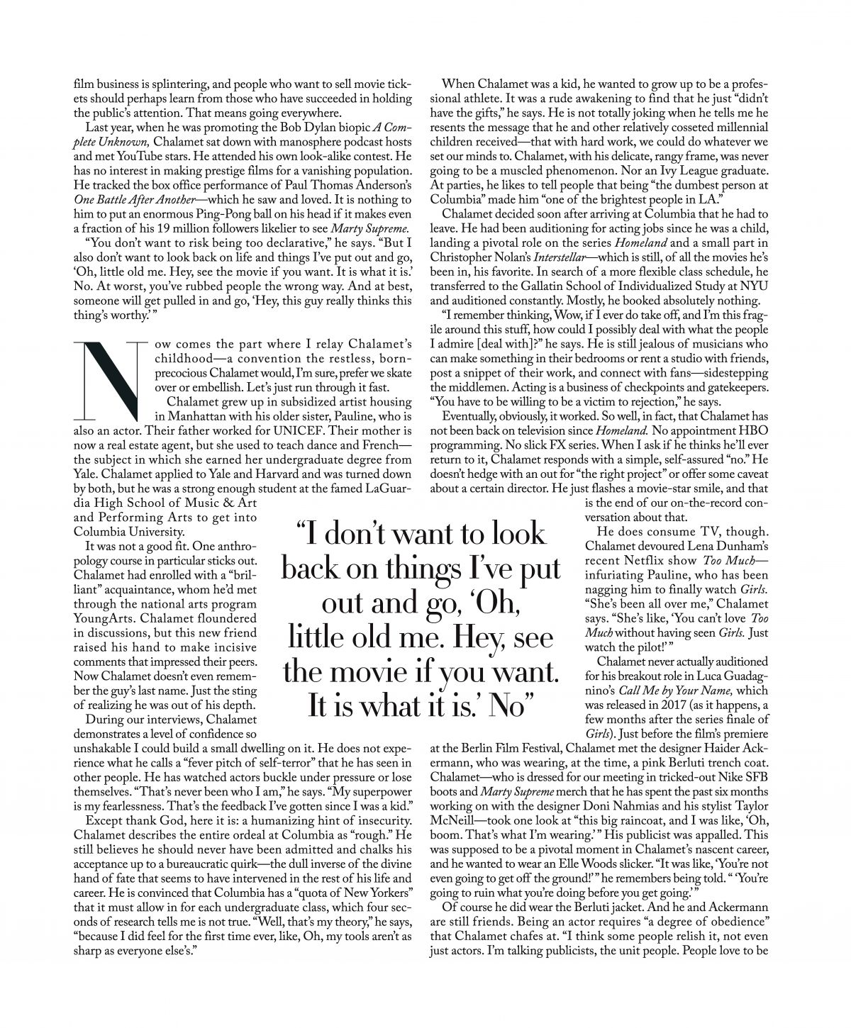Timothee Chalamet Vogue US Magazine, December 2025