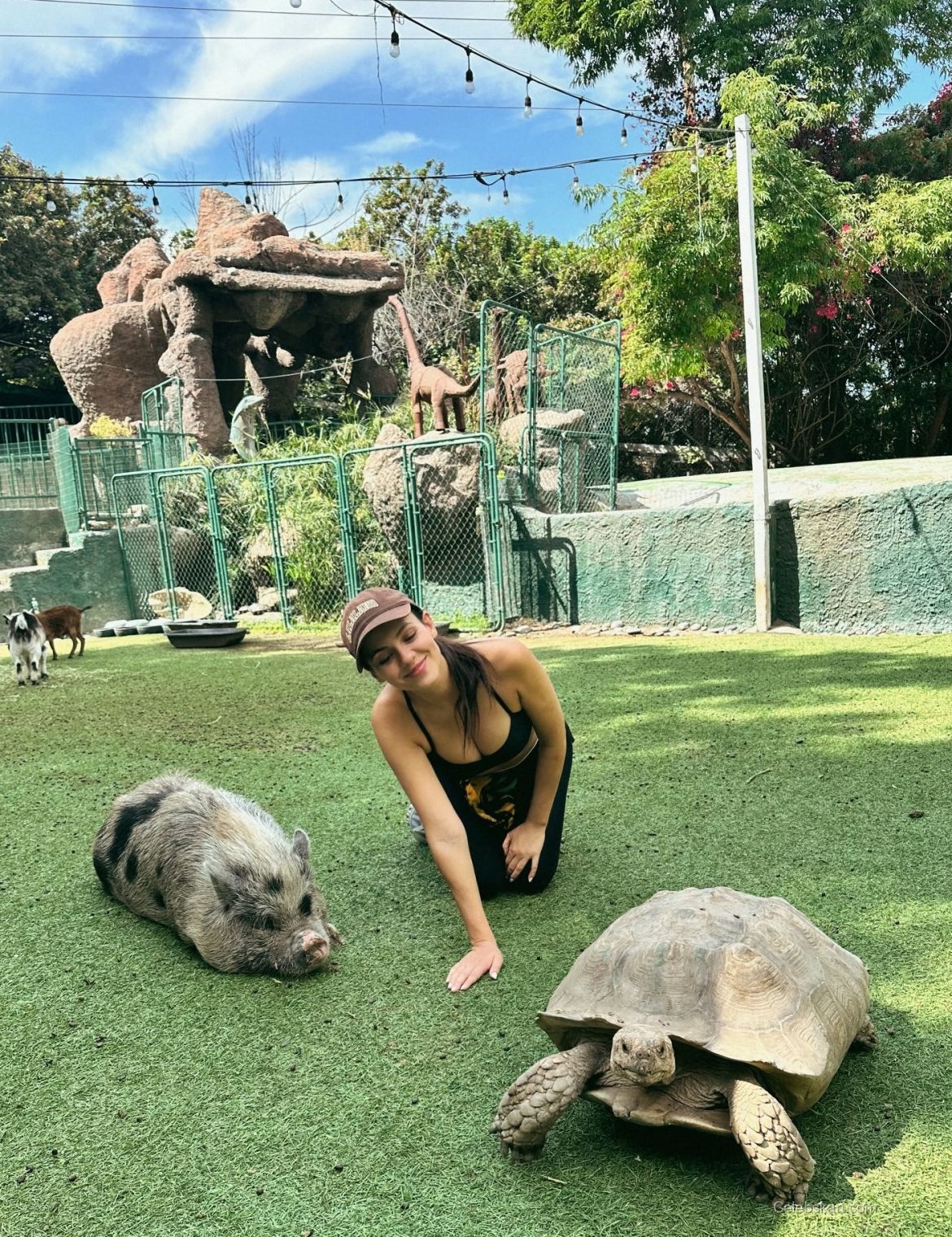 This look stands out due to its unique combination of playful elements and casual elegance. The bright colors of her cropped top and the denim create a visual delight. Additionally, the styling choices transmit a sense of individuality; she managed to achieve a balance between being trendy and approachable. The comfort factor is undeniable, inviting fans to replicate such a stylish yet laid-back look.