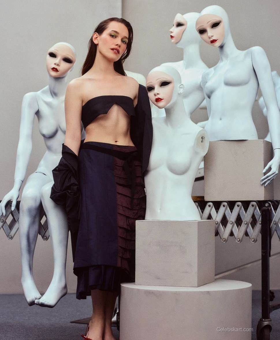 The ambiance of the event enhanced her look, with soft lighting that showcased her makeup's subtle hues. As she posed against the backdrop of artistic mannequin figures, her expression infused the moment with confidence. At one point, Victoria stepped forward, engaging with the creative space around her—a reflection of her dynamic personality.