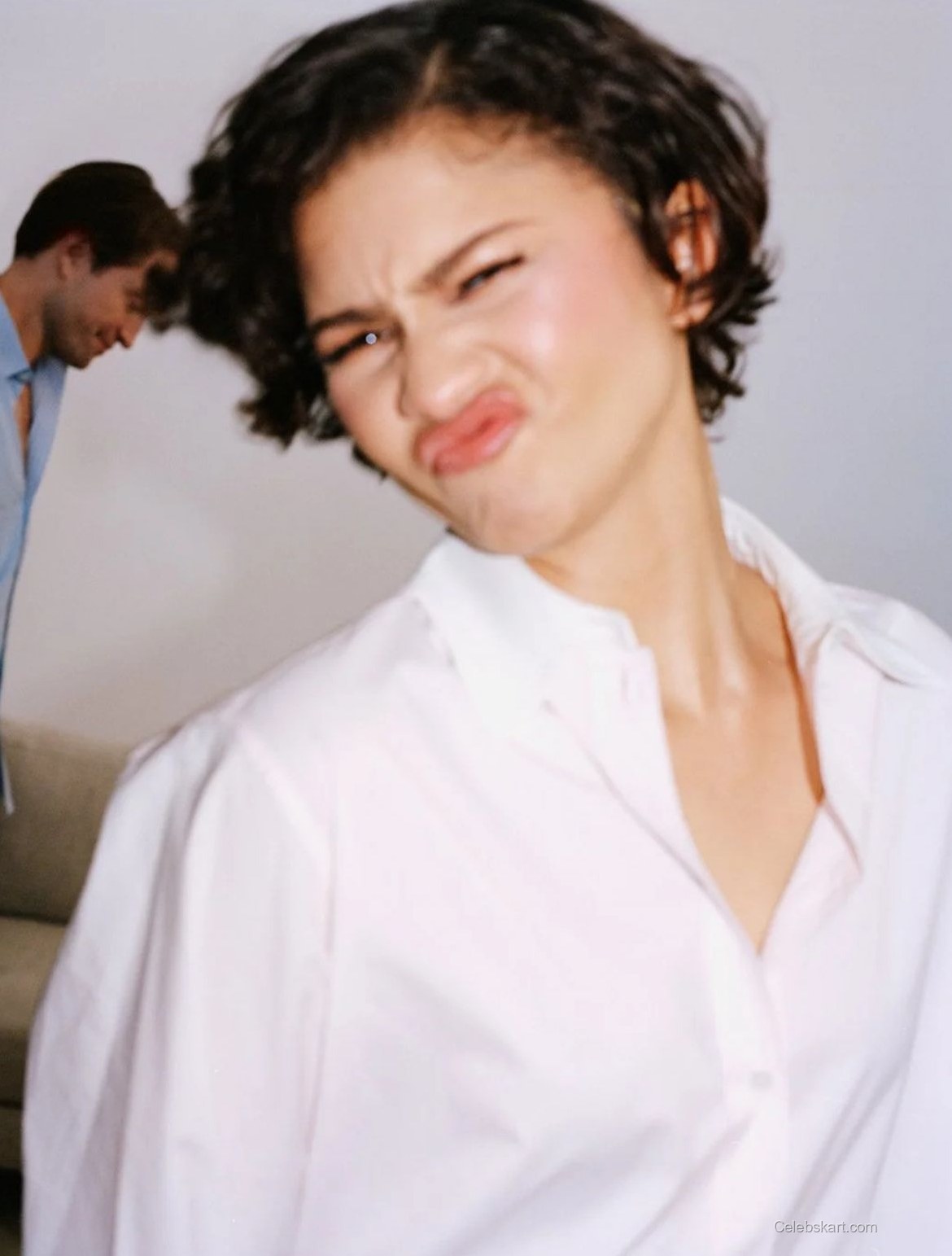 During the shoot, Zendaya was seen striking playful yet sophisticated poses. In one frame, she curved her lips into a playful pout, showcasing a vibrant energy. In another moment, she and Pattinson shared an intimate gaze, creating a visually striking dynamic that drew interest. The white backdrop enhanced the overall vibe, accentuating her natural beauty and effortless charisma. For those who want to mimic her style, explore more about how to wear oversized shirts.