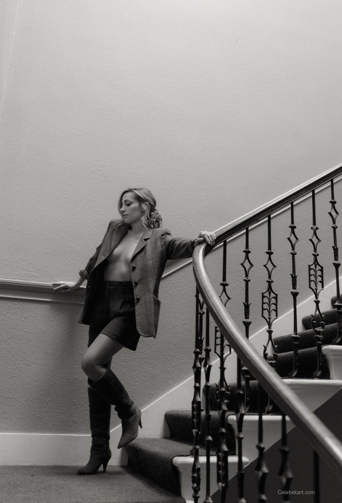 Throughout the photoshoot, Zibby’s poses were both confident and relatable. One moment had her sitting gracefully on a bed adorned with white linens, her expression soft yet alluring. In another stunning scene, she struck a powerful pose against a staircase, with her hand lightly resting on the railing. This juxtaposition of settings highlighted her versatility as a model and her ability to embody different moods effortlessly.